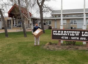 Chris Cornet of College Ford of Taber dropped off face shields at Clearview Lodge. Thank you so much for keeping