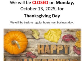 Admin Office at 5318 48 Ave, Taber will be CLOSED for Thanksgiving Day