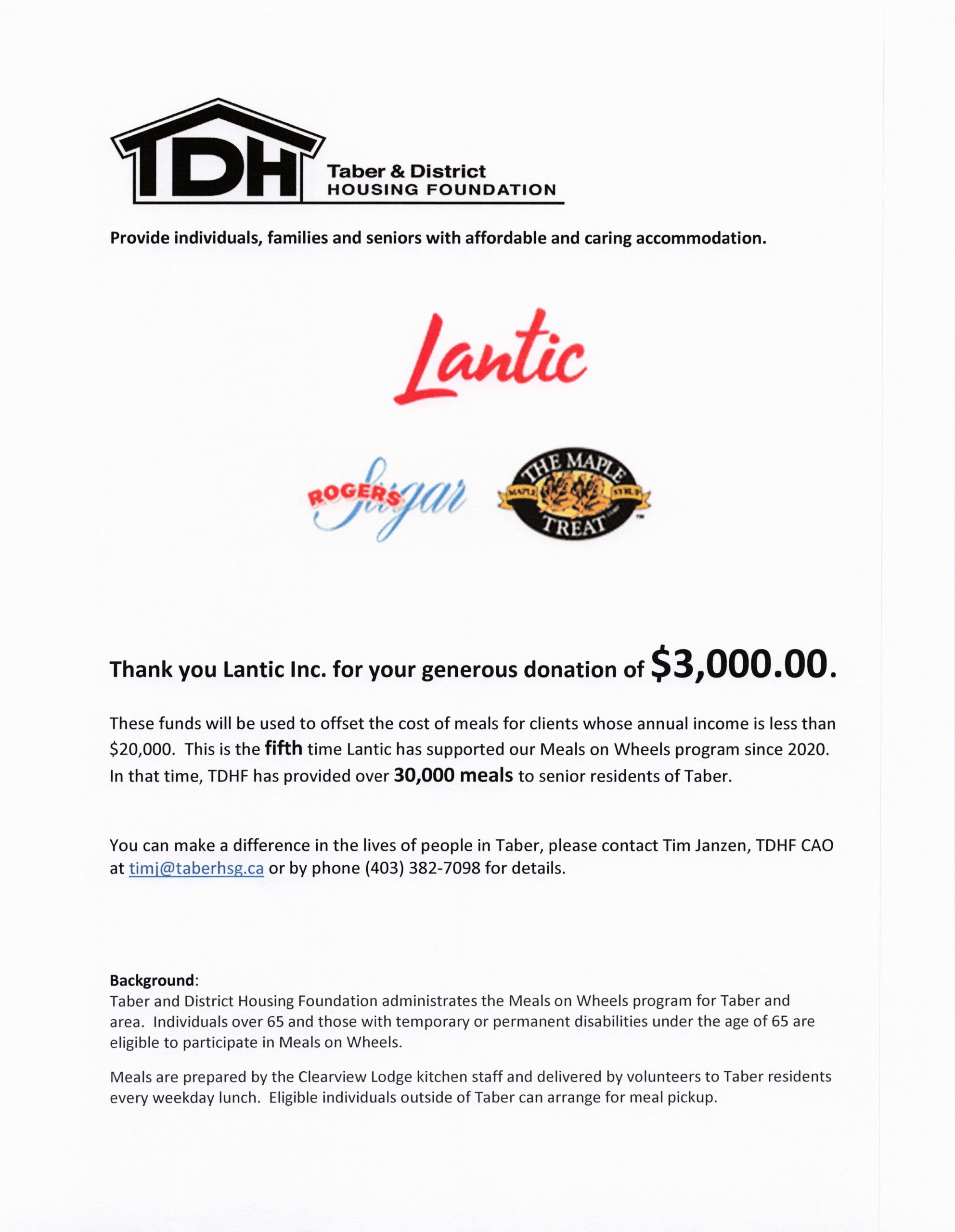 THANK YOU – Lantic Inc. – Meals on Wheels Donation